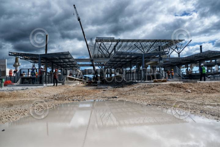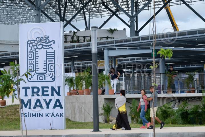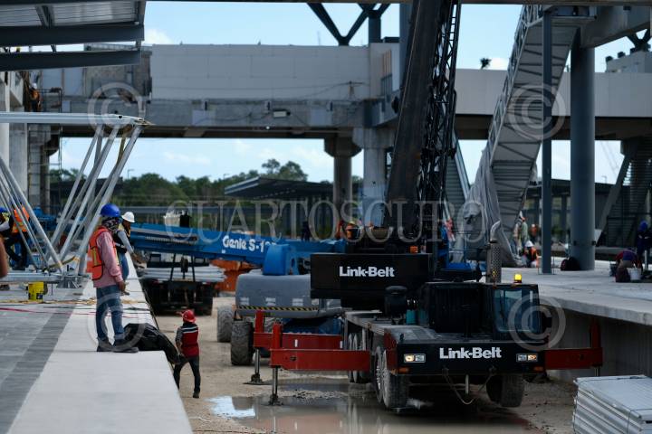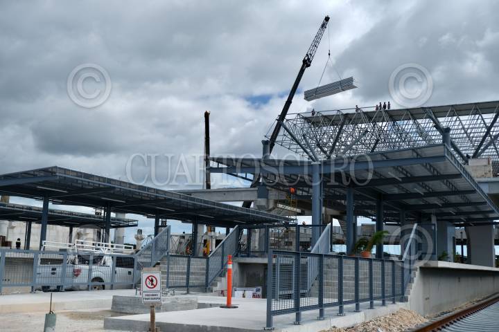 Aspectos de los avances de la Estación Cancún Tren Maya, ubicada en el Tramo 4 y que el Ejecutivo Federal a asegurado que se este proyecto se pondrá en marcha en diciembre próximo.