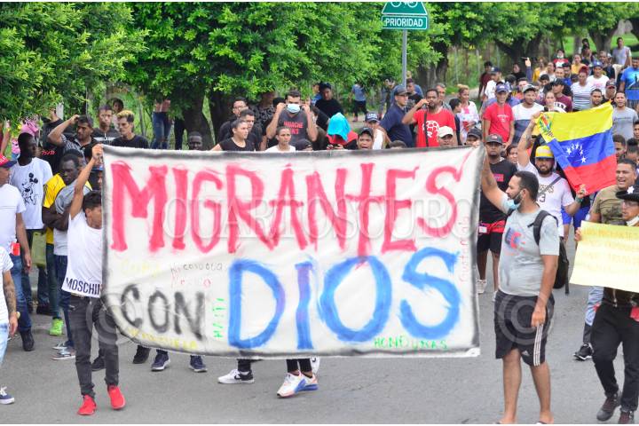 Cerca de mil 500 migrantes, en su mayoría venezolanos, protestaron afuera de la Estación Migratoria Siglo XXI para pedirle a las autoridades la liberación de sus connacionales.