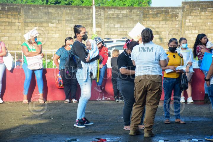 Camiones salen de la Estación Migratoria Siglo XXI con migrantes que serán deportados a sus países de origen.