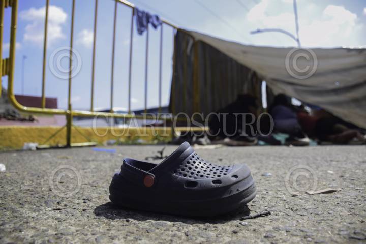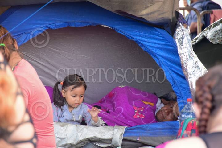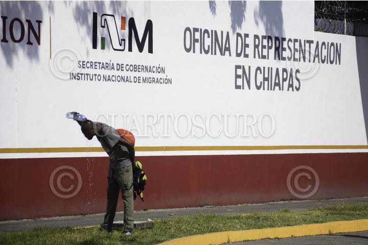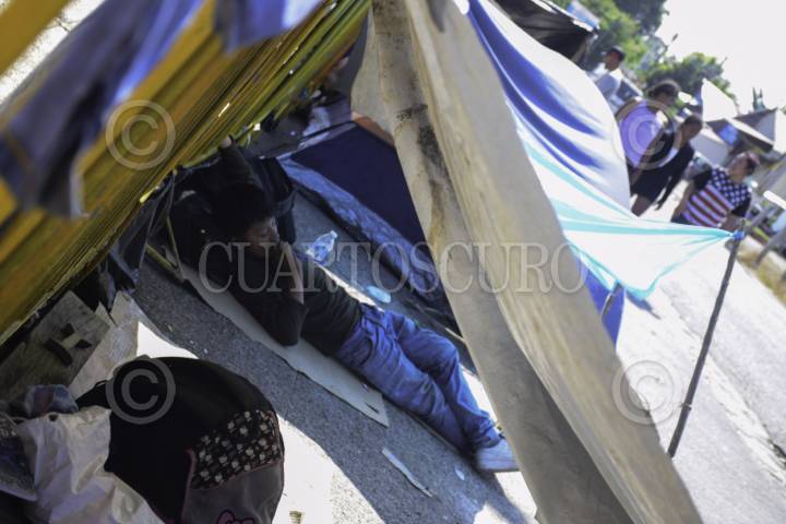 Migrantes acampan afuera de la Estación Migratoria Siglo XXI para pedir informes a las autoridades y así pode regularizar su estancia en México.