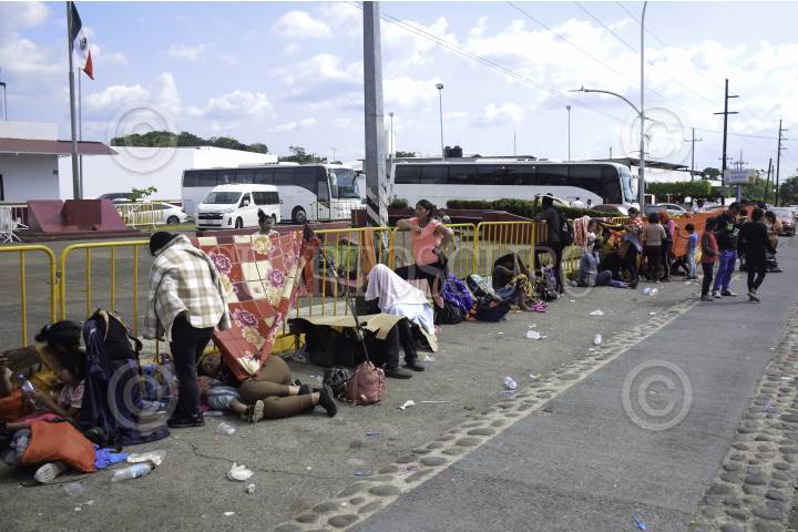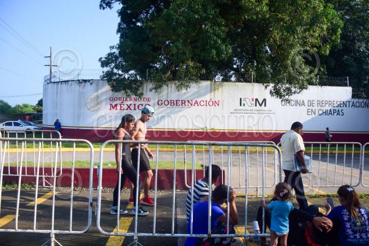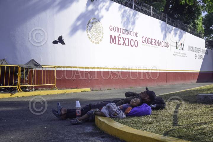Migrantes duermen en los alrededores de la Estación Migratoria Siglo XXI para solicitar la forma migratoria que les permita legalizar su estancia en territorio nacional y así poder continuar rumbo a los Estados Unidos.