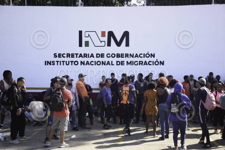 Migrantes afuera de la Estación Migratoria Siglo XXI