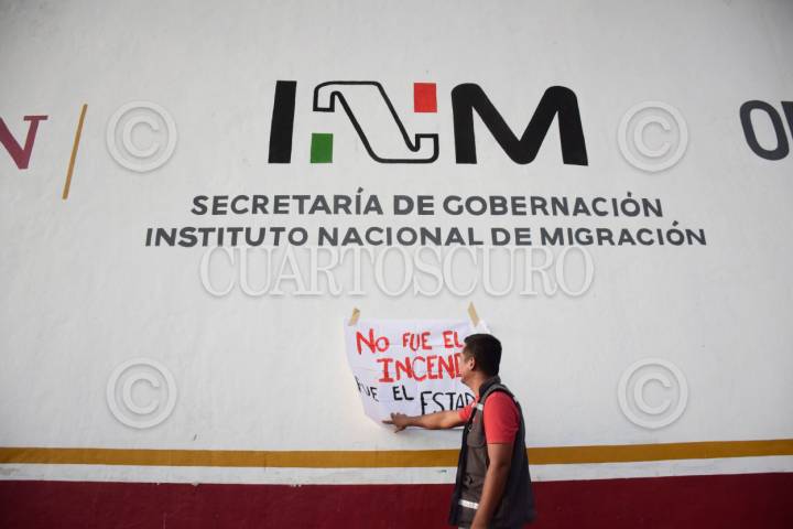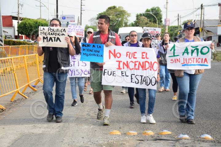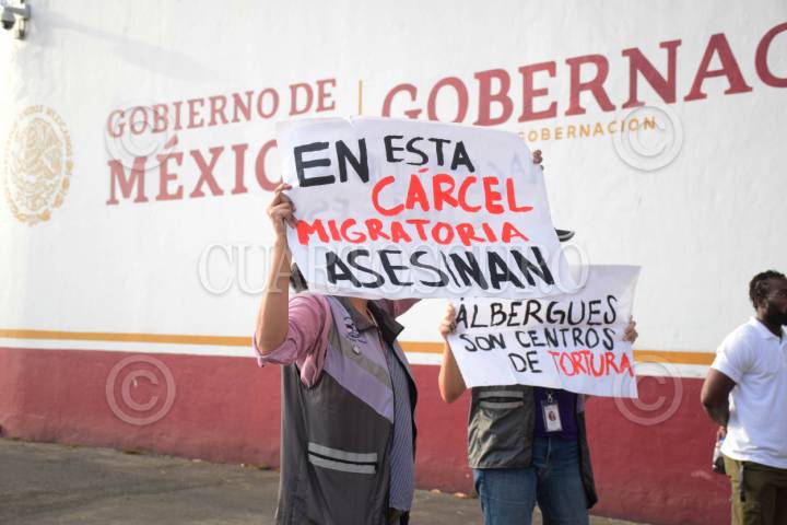 TAPACHULA, CHIAPAS, 25MARZZO2024.- Integrantes del Cetro de Derechos Humanos Fray Matías protestaron afuera de la Estación Migratoria Siglo XXI. señalaron que en lo que va del 2024 se han registrando la muerte de 2 personas migrantes en sus instalaciones. La organización han documentando que las ultimas dos administraciones sumarían 55 personas migrantes que han muerto en este centro migratorio. FOTO: DAMIÁN SÁNCHEZ/CUARTOSCURO.COM