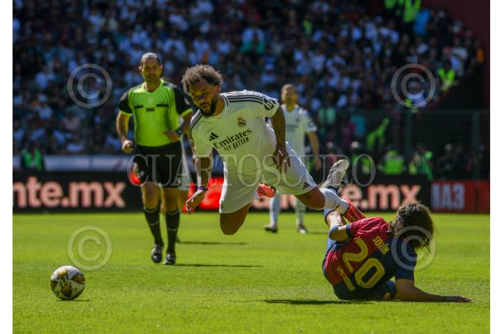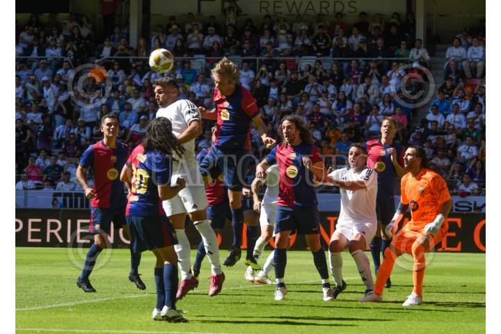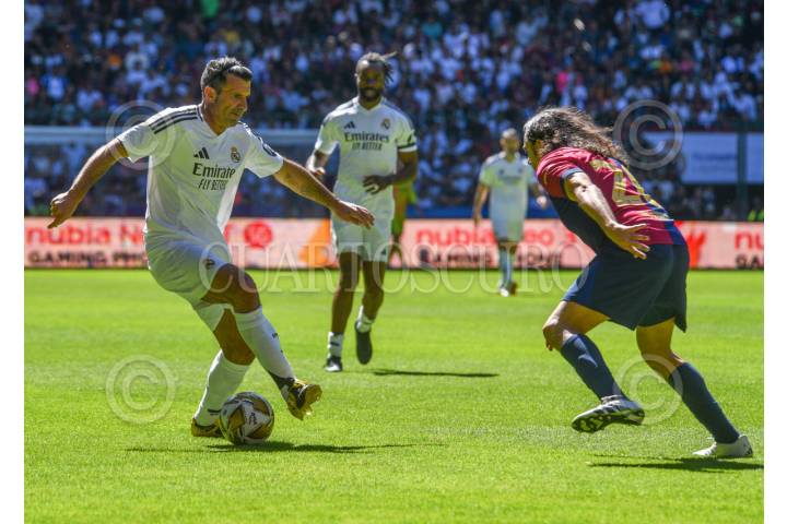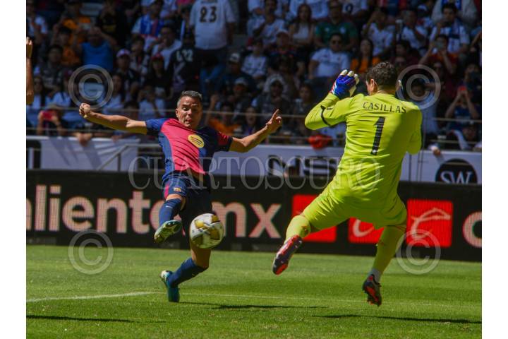 TOLUCA, ESTADO DE MÉXICO, 13ABRIL2025.- Leyendas del Barcelona y el Real Madrid, dos de los mejores equipos del mundo se enfrentaron en la cancha del estadio Nemesio Diez, en la ciudad de Toluca, figuras como Íker Casillas, Luis Figo, Andrés Iniesta, Rivaldo, Carlos Puyol, Rivaldo, Guti y Marcelo, hicieron vibrar la cancha durante el clásico de Blaugranas y Culés, el encuentro culminó con un marcador final 2-2, definiéndose el partido en penales, 7-8, dando la victoria a la escuadra del Real Madrid. FOTO: CRISANTA ESPINOSA AGUILAR /CUARTOSCURO.COM