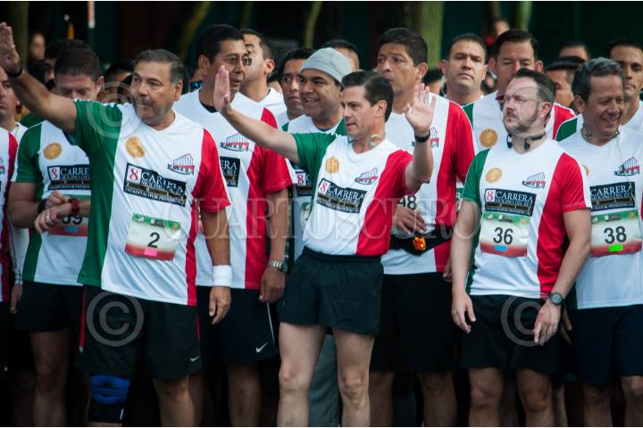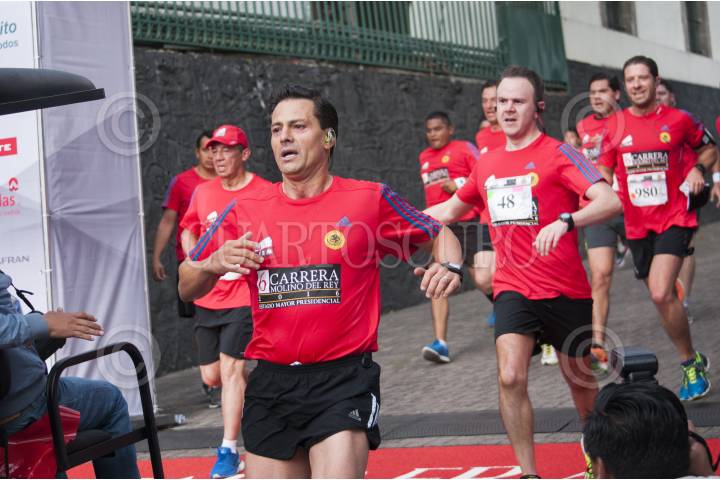 CIUDAD DE MÉXICO, 14JULIO2018.- Enrique Peña Nieto, presidente de México, encabezó la octava edición del de la carrera Molino del Rey la cual es organizada por el Estado Mayor Presidencial en un circuito dentro del Bosque de Chapultepec que abarca 10 kilómetros. En la competencia también participaron Francisco Guzmán Ortiz, Jefe de la Oficina de Presidencia; Eduardo Sánchez Hernández, vocero del Gobierno de la República; Roberto Francisco Miranda, jefe del Estado Mayor; Alfredo Cervantes Castillo titular de la CONADE, entre otros. FOTO: DIEGO SIMÓN SÁNCHEZ /CUARTOSCURO.COM