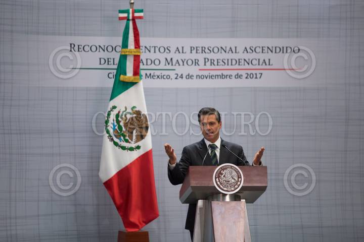 CIUDAD DE MÉXICO, 24NOVIEMBRE2017.- Enrique Peña Nieto, presidente de México y Roberto Miranda, General del Estado Mayor, presidieron la ceremonia de "Reconocimientos al personal ascendido del Estado Mayor Presidecial", realizada en la residencia oficial de Los Pinos. FOTO: ADOLFO VLADIMIR /CUARTOSCURO.COM