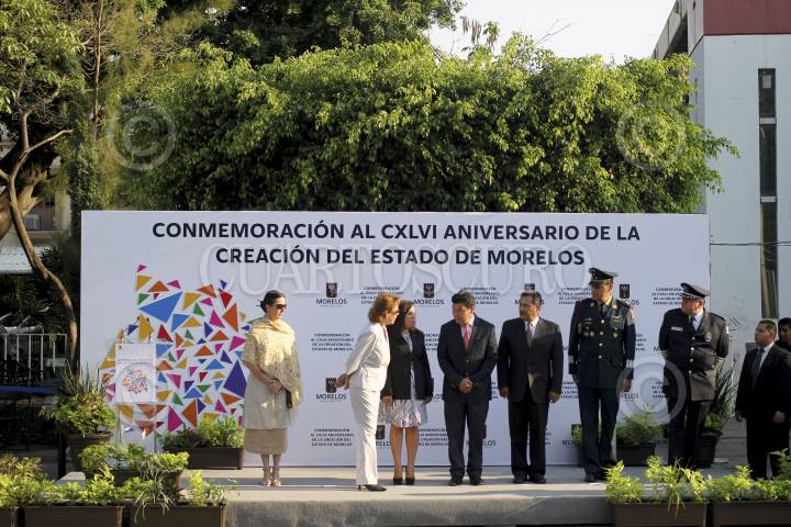 CUERNAVACA, MORELOS, 17ABRIL2015.- Se llevó a cabo en Plaza de Armas la ceremonia cívica en conmemoración por el 146 Aniversario de la Creación del Estado de Morelos, encabezada por el secretario de gobierno Matías Quiróz, el Comisionado de Seguridad, Alberta Capella y otros funcionarios. El izamiento de bandera estuvo a cargo de elementos de la 24a zona militar. FOTO: PATRICIA MORALES / CUARTOSCURO.COM