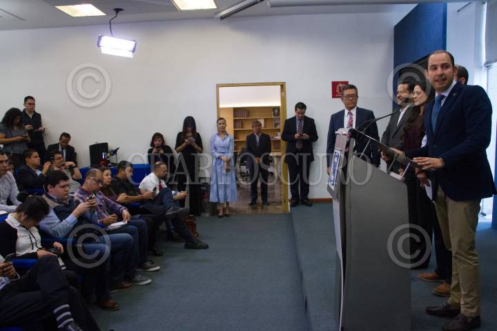 CIUDAD DE MÉXICO, 25FEBRERO2019.- Marko Cortés Mendoza Presidente Nacional del PAN ,en la rueda de prensa realizada en la sede nacional del partido, que se convocó para tratar el tema de la huelga sindical ante la negativa de la alcaldesa por la exigencia del aumento salarial del 17% en el estado de Pachuca. El dirigente del partido aseguro que respalda la postura de la alcaldesa y recalcó que el partido acompañará a Yolanda durante todo el proceso. FOTO: ROGELIO MORALES /CUARTOSCURO.COM