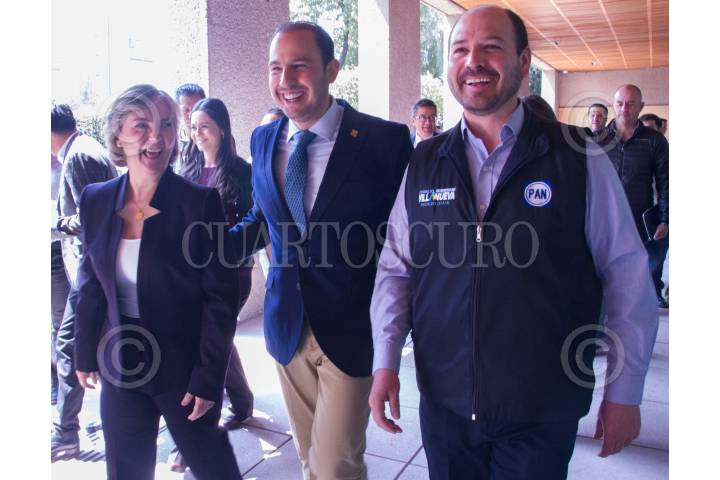 CIUDAD DE MÉXICO, 25FEBRERO2019.- Marko Cortés Mendoza Presidente Nacional del PAN; Yolanda Tellería Beltrán, Presidente Municipal de la Ciudad en Pachuca y Cornelio García, Jefe estatal del partido, después de la rueda de prensa realizada en la sede nacional del partido, que se convocó para tratar el tema de la huelga sindical ante la negativa de la alcaldesa por la exigencia del aumento salarial del 17% en el estado de Pachuca. FOTO: ROGELIO MORALES /CUARTOSCURO.COM