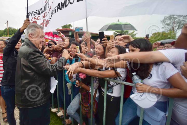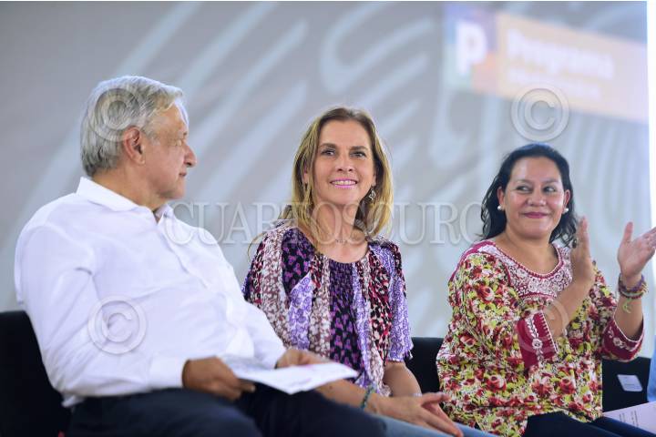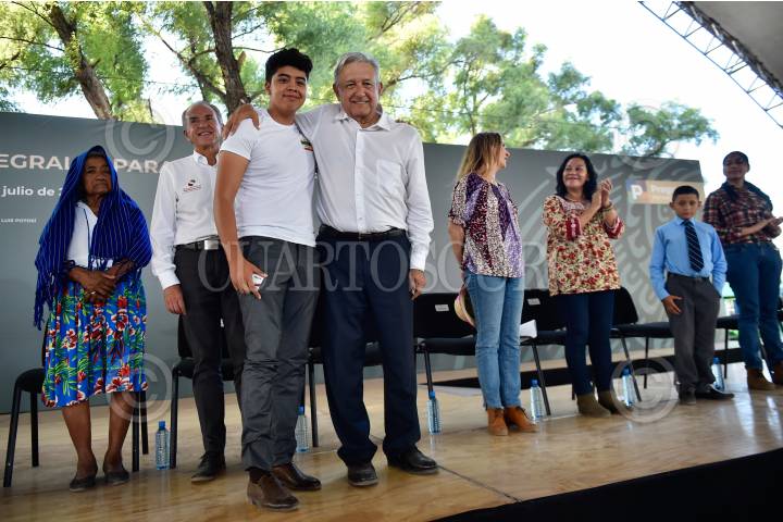 RIO VERDE, SAN LUIS POTOSÍ, 19JULIO2019.- Andrés Manuel López Obrador, Presidente de México en Programas Integrales de Bienestar en Rio Verde, San Luis Potosí. Lo acompañan Juan Manuel Carreras López, Gobernador de San Luis Potosí; María Luisa Albores González, Secretaria de Bienestar y Beatriz Gutiérrez Müller, Presidenta honoraria del Consejo Asesor Honorario de la Coordinación Nacional Memoria Histórica y Cultural de México. FOTO: PRESIDENCIA /CUARTOSCURO.COM