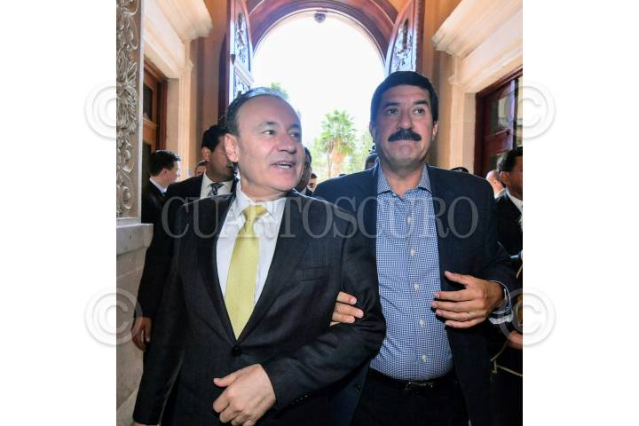 CIUDAD JUÁREZ, CHIHUAHUA, 11OCTUBRE2019.- Previo al inicio de la 2ª Reunión Regional Zona Noreste-Noroeste, de la Conferencia Nacional de Secretarios de Seguridad y Sistema Penitenciario El gobernador Javier Corral Jurado recibió en el Palacio de Gobierno al secretario de Seguridad y Protección Ciudadana, Alfonso Durazo Montaño, ambos presidirán la reunión en la que se tendrá la participación de funcionarios de 10 estados del país. FOTO: CORTESÍA /CUARTOSCURO.COM