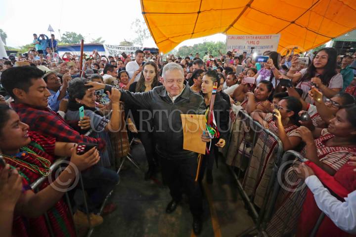 PUTLA VILLA DE GUERRERO, OAXACA, OCTUBRE2019.- Andrés Manuel López Obrador, presidente de México, visito y dialogo con los pueblos triqui, mixteco, tacuate, náhuatl y amuzgo. Na'noo nii güento' gaa ni’ chu'ma schann triqui, mixteco, tacuate, náhuatl y amuzgo. FOTO: PRESIDENCIA /CUARTOSCURO.COM