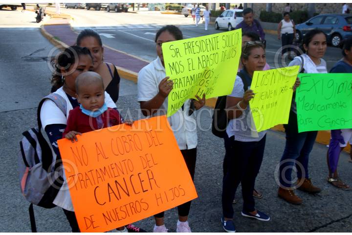 Durante dos horas familiares y pacientes bloquearon la avenida costera en Miguel Alemán.