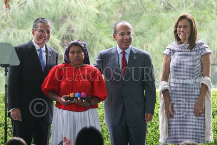 MÉXICO, D.F., 12MAYO2011.- Margarita Zavala de Calderón y Felipe Calderón Hinojosa, presidente de México, durante la entrega de reconocimientos a encargadas de estancias infantiles en el país, en la residencia oficial de Los Pinos. FOTO: ISAAC ESQUIVEL/CUARTOSCURO.COM