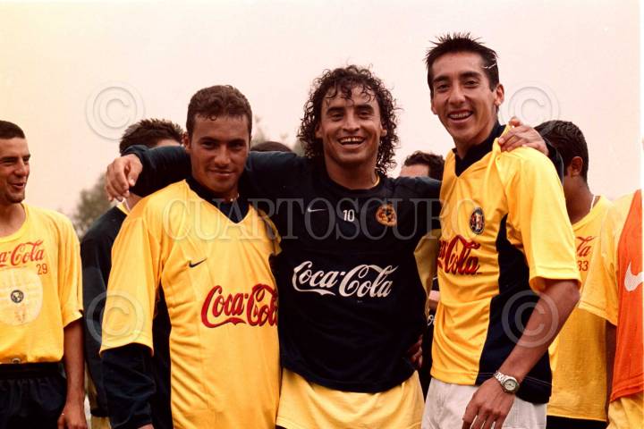 Esta mañana el equipo de futbol América presento sus nuevos uniformes a los medios de comunicación. Fabian Estay posa con sus comapñeros de equipo. FOTO: Alberto Valdez/CUARTOSCURO.COM