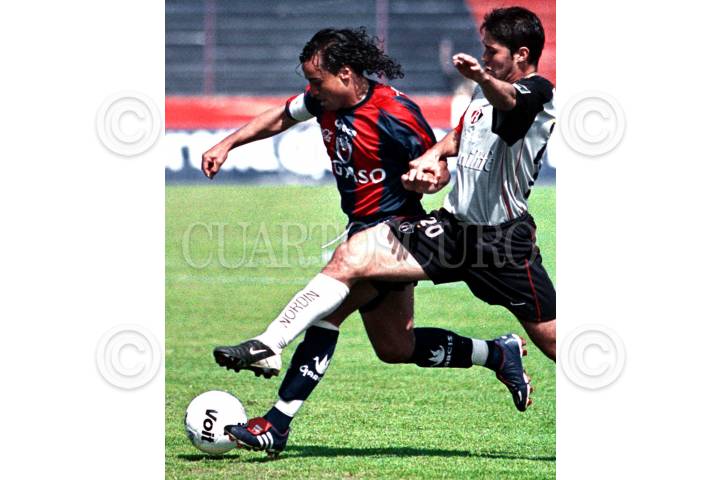 Los Potros de Hierro del Atlante cayeron este domingo por marcador de cuatro goles a dos frente al Atlas, en la Jornada 3 del Torneo Clausura 2003, en el Estadio Universidad Tecnológica de Nezahualcóyotl. En la imagen, Fabian Estay, capitan de Atlante, gana el balón a su contrincante de Atlas. FOTO: Juan Pablo Zamora/CUARTOSCURO.COM