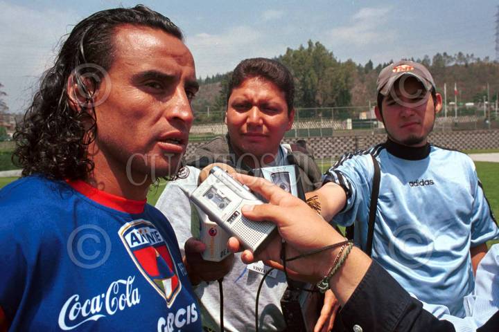 Fabián Estay, habla a los reporteros deportivos sobrer su reencuentro con el gol en el partido que los Potros jugaron ayer ante los Rayos del Necaxa. FOTO: Pedro Mera/CUARTOSCURO.COM