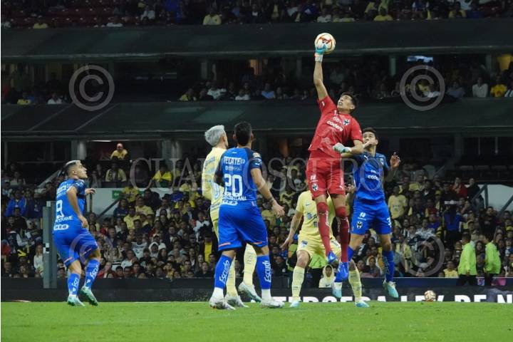 Esteban Andrada, portero del Monterrey, fue expulsado durante los últimos minutos del partido contra el América en el Estadio Azteca