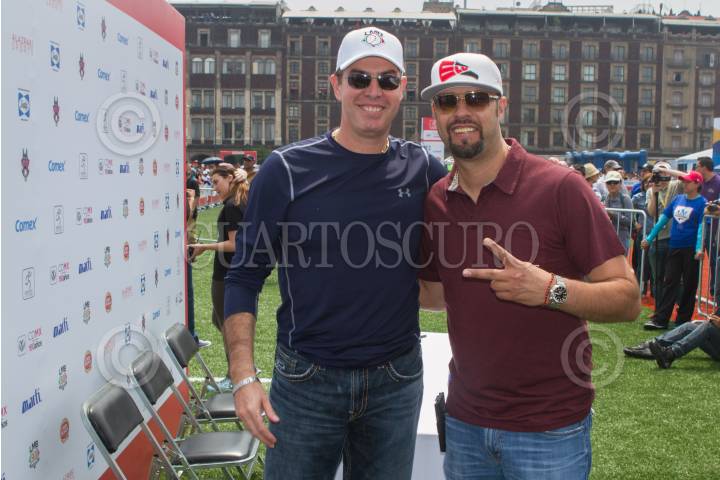 MÉXICO, D.F., 13JUNIO2015.- Los beisbolistas Ismael "Rocket" Valdez y Esteban Loaiza, firmaron autógrafos en el marco de las actividades del Home Run Derby que se realiza en el Zócalo. FOTO: MOISÉS PABLO /CUARTOSCURO.COM