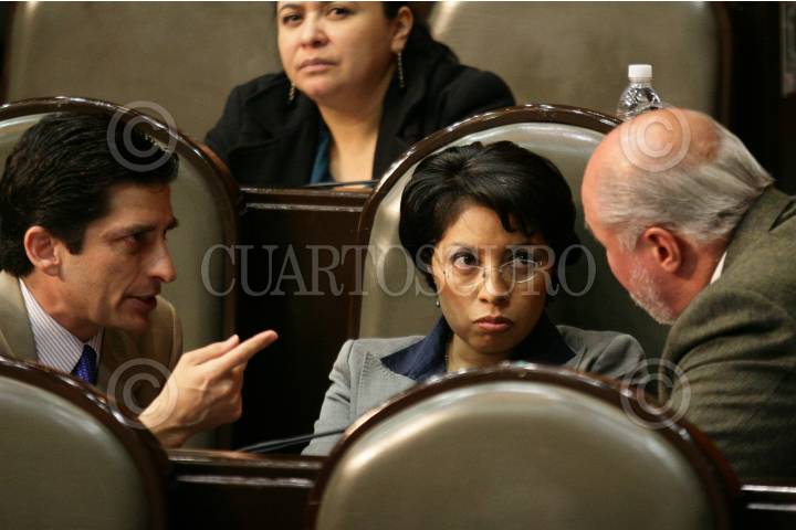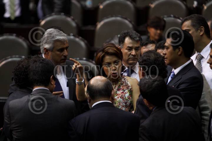 MÉXICO, D.F., 28ABRIL2011.- La diputada del PRD, Esthela Damian conversa con diputados del PAN durante la sesión ordinaria en la Cámara de Diputados. FOTO: RODOLFO ANGULO/CUARTOSCURO.COM