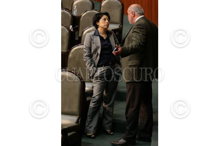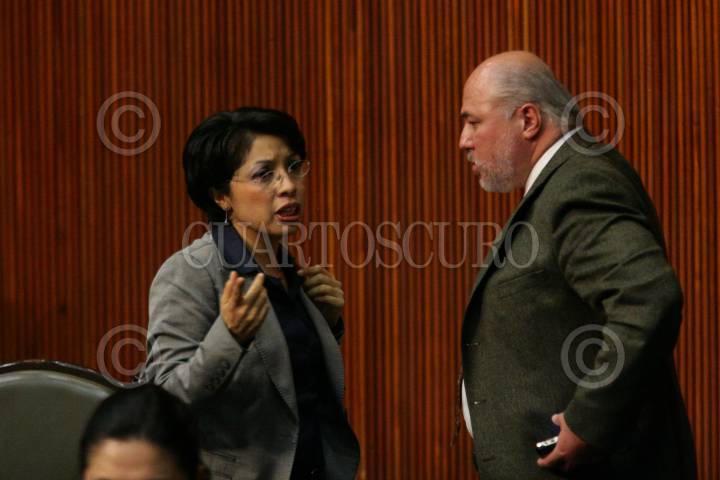 MÉXICO D.F., 03DICIEBRE2009.- Esthela Damián Peralta, Diputada del PRD, dialoga con Manuel Jesús Clouthier Carrillo, Diputado del PAN, durante la sesión en la Cámara de Diputados. FOTO: GUILLERMO PEREA /CUARTOSCURO.COM
