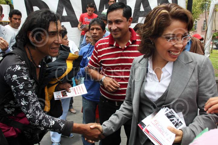 MÉXICO, D.F., 25JULIO2011.- Esthela Damián Peralta presidenta de la Comisión de Vigilancia de la Cámara de Diputados, realizó un recorrido, realizó un acto público en la zona de la Merced, donde repartieron volantes con información para erradicar la violencia contra las mujeres y la trata de personas. FOTO: SAÚL LÓPEZ/CUARTOSCURO.COM