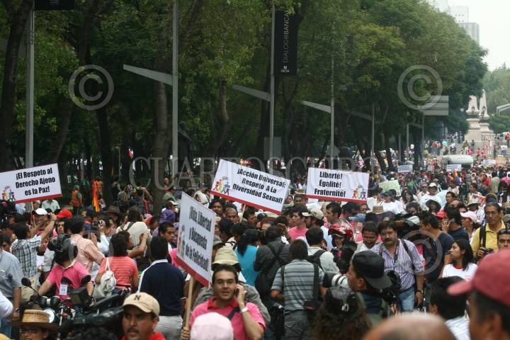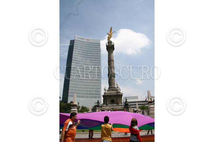 MÉXICO, D.F., 02AGOSTO2008.- Cientos de personas se dieron cita en el Ángel de la Independencia para participar en la Primer Marcha contra el Estigma, la Discriminación y la Homofobia. FOTO: SÁSHENKA GUTIERREZ /CUARTOSCURO.COM