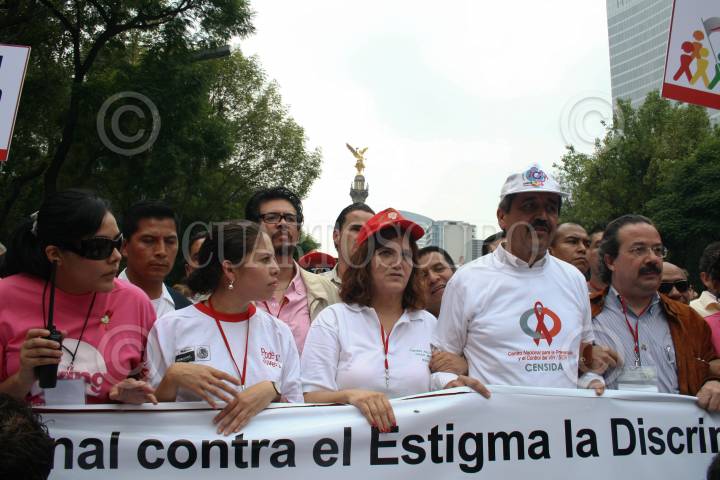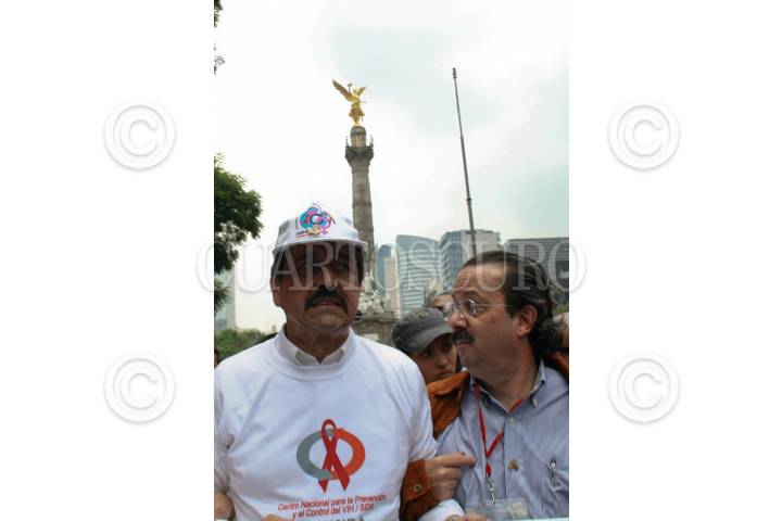 MÉXICO, D.F., 02AGOSTO2008.- José Ángel Córdova Villalobos, titular de la Secretaría de Salud federal, acompañado por Francisco Molinar Horcasitas titular del IMSS encabezaron la marcha que se realizo del ángel de la independencia al Zócalo en contra del Estigma, la Discriminación y la Homofobia. FOTO: SÁSHENKA GUTIÉRREZ/CUARTOSCURO.COM