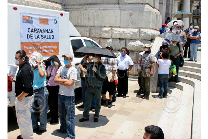 MÉXICO, D.F., 30ABRIL2009.- Continúan con su labor de prevención y detención de influenza las llamadas caravanas de salud que se an ubicado en lugares estratégicos de la ciudad, donde decenas de personas hacen filas para ser atendidos. FOTO: RICARDO CASTELAN/CUARTOSCURO.COM