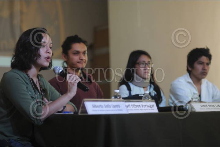 MÉXICO, D.F., 16JUNIO15.- Estudiantes violentamente agredidos el pasado 5 de junio del año en curso por un grupo de encapuchados dentro de su domicilio particular en la ciudad de Xalapa, acompañados por sus padres, académicos y activistas del estado de Veracruz además de integrantes de SeraPaz encabezados Alberto Solís, ofrecieron una conferencia de prensa en las instalaciones del ProDH para dar a conocer en voz de los afectados testimonios de la agresión y solicitar apoyo por parte de organizaciones en defensa de los derechos humanos a nivel nacional e internacional, así como apoyo de abogados para fortalecer el equipo jurídico con el que cuentan en el estado, esto ante la desconfianza que tiene en las instituciones de la entidad veracruzana. FOTO: RUBÉN ESPINOSA /CUARTOSCURO.COM