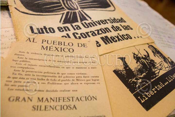 CIUDAD DEMÉXICO, 30SEPTIEMBRE2017.- Recortes de periódicos antiguos y panfletos del movimiento estudiantil de 1985, que guardan como parte de su archivo histórico,miembros del Comite del 68. Este lunes se conmemora 49 años de la matanza por parte del Estado Mexicano, presidido por Gustavo Díaz Ordaz. FOTO: TERCERO DÍAZ /CUARTOSCURO.COM