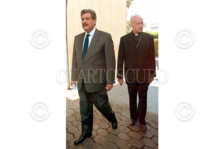 Rodolfo Elizondo acompaña al Cardenal Roger Etchegaray, el cual sostuvo un encuentro con el presidente Vicente Fox. FOTO: Victoria Valtierra/CUARTOSCURO.COM