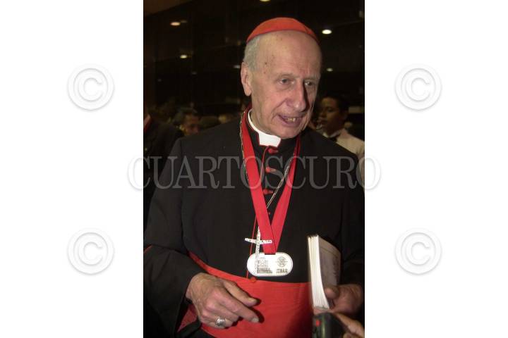 Una conferencia improvisada ofrecio el Sr. Cardenal Roger Etchegaray, a su salida de la reunión privada con el primer mandatario de la Nación. FOTO: Victoria Valtierra/CUARTOSCURO.COM