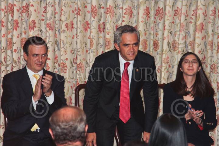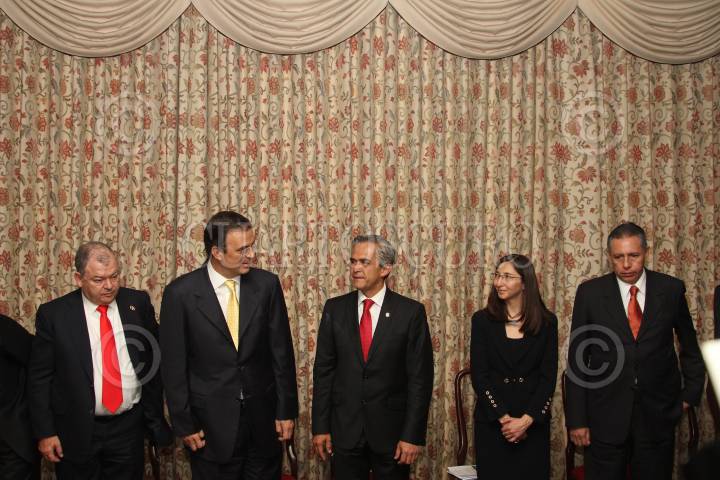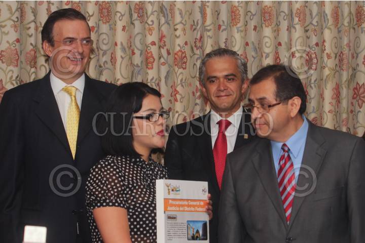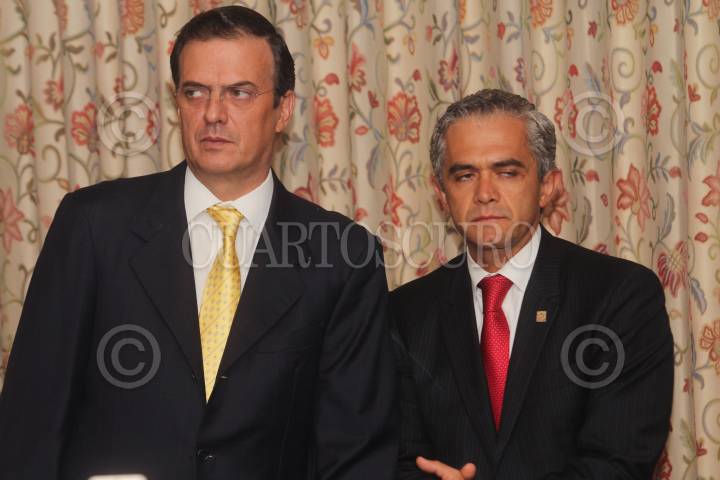 MÉXICO, D.F., 27ABRIL2011.- Marcelo Ebrard Casaubon, Jefe de Gobierno Capitalino junto a Miguel Ángel Mancera, Procurador de Justicia del DF durante la presentación del Código de Ética para los servidores públicos de la Procuraduria General de Justicia Capitalina. FOTO: ENRIQUE ORDÓÑEZ/CUARTOSCURO.COM