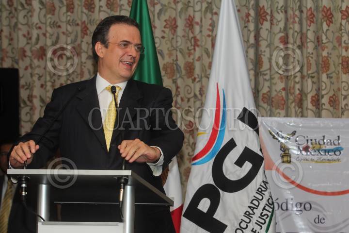 MÉXICO, D.F., 27ABRIL2011.- Marcelo Ebrard Casaubon, Jefe de Gobierno Capitalino durante la presentación del Código de Ética para los servidores públicos de la Procuraduria General de Justicia Capitalina. FOTO: ENRIQUE ORDÓÑEZ/CUARTOSCURO.COM