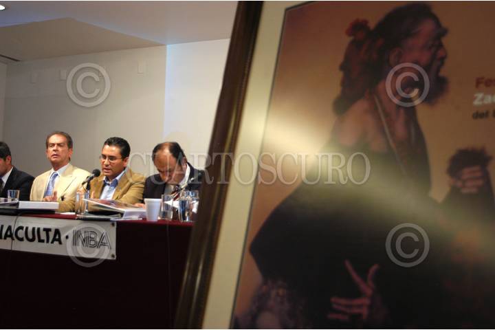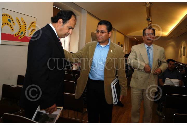 MEXICO D.F. 20MARZO2005.- En el palacio de Bellas Artes fue anuncido el Vigesimo Festival Cultural Zacatecano que se realizara del 8 al 16 de abril. Andrés Torres, funcionario de Conaculta, Eudoro Fonseca, director de Vinculación Cultural de Conaculta y David Enrique Rivera, director del Instituto Zacatecano de Cultura antes de la conferencia. FOTO: Germán Romero/CUARTOSCURO.COM