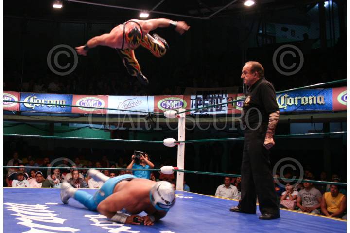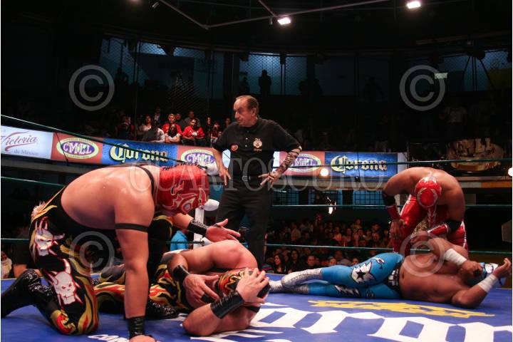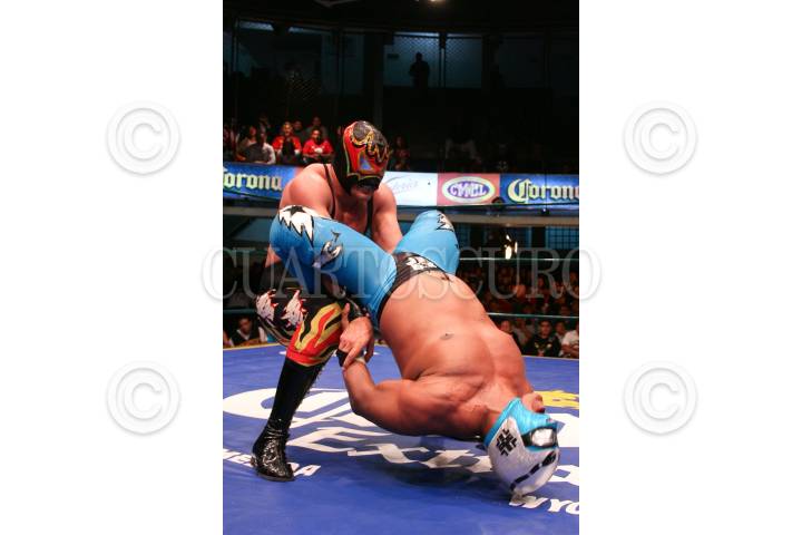 MÉXICO, D.F., 14DICIEMBRE2008.- A una lucha de tres caídas sin limite de tiempo los ya campeones Stuka y Flash defendieron su cinturón y titulo de campeones por parejas en la arena Coliseo Mexico contra sus retadores Nosferatus y Euforia quienes no tuvieron la habilidad ni la fuerza suficiente para vencer a sus oponentes. FOTO: RICARDO CASTELAN/CUARTOSCURO.COM