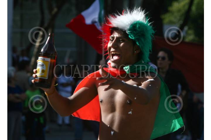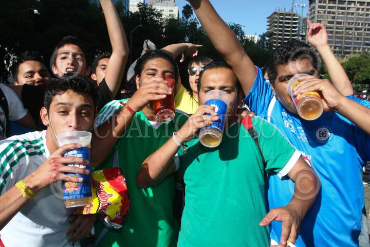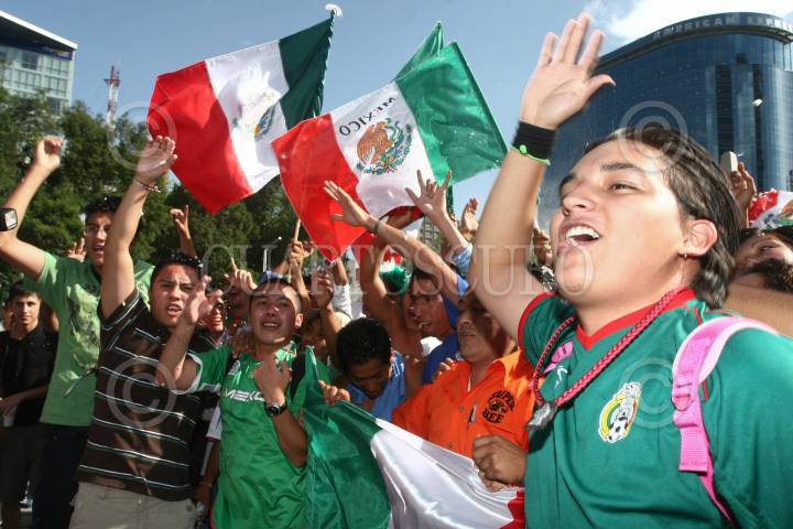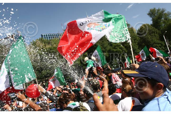 MÉXICO, D.F., 12AGOSTO2009.- Miles de personas festejaron en la glorieta del ángel de la independencia el triunfo de la selección de fútbol mexicana 2 goles a 1 ante la selección de Estados Unidos. FOTO: SAÚL LÓPEZ/CUARTOSCURO.COM