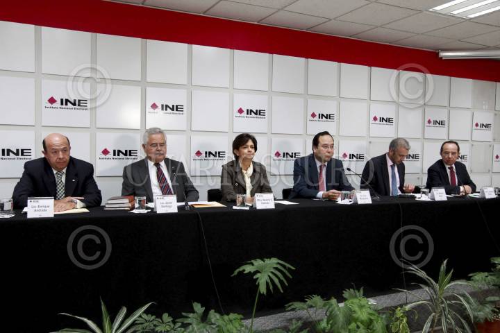 MÉXICO, D.F., 06MAYO2015.- Las Consejeras y Consejeros Electorales Pamela San Martín Ríos y Valles, Enrique Andrade González, Eugenia Galindo Centeno, Marco Antonio Baños Martínez y el Consejero Presidente del INE Lorenzo Córdova Vianello durante la sesión en el instituto electoral. FOTO: INE /CUARTOSCURO.COM