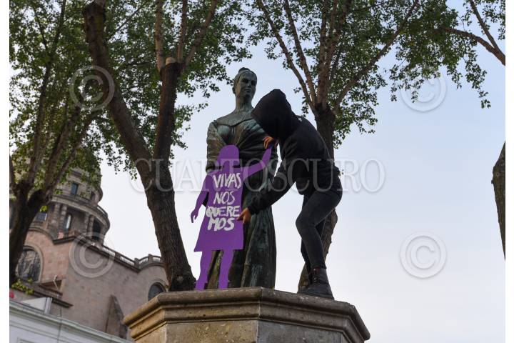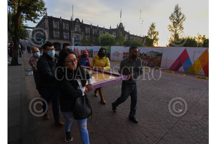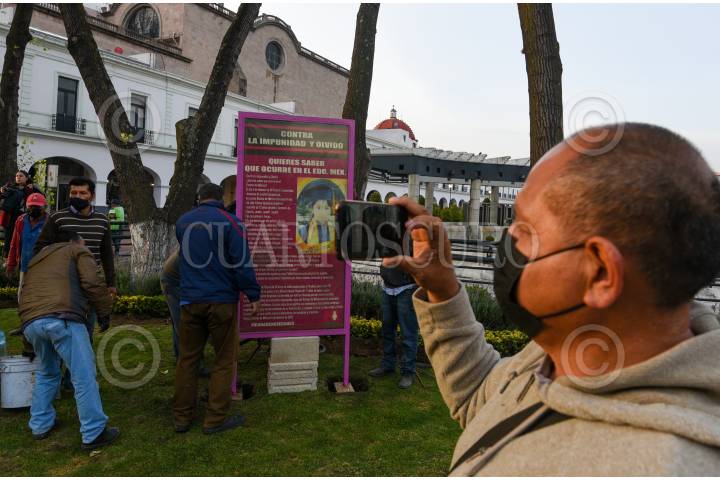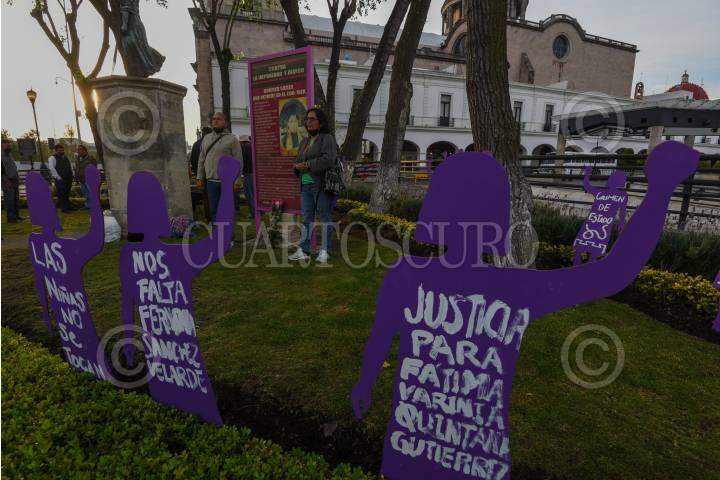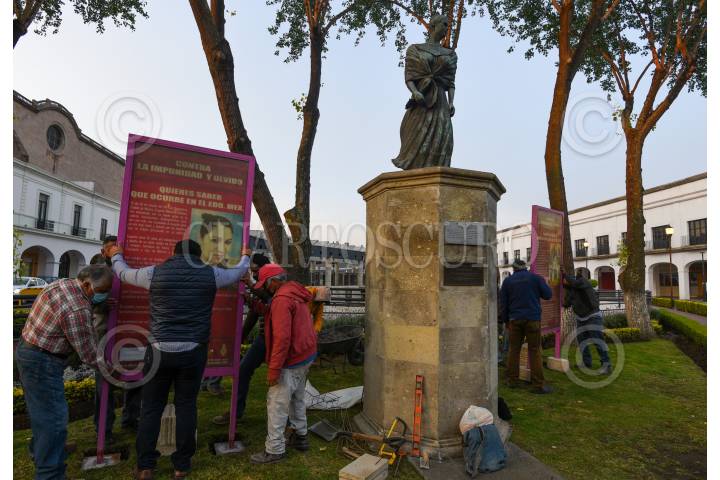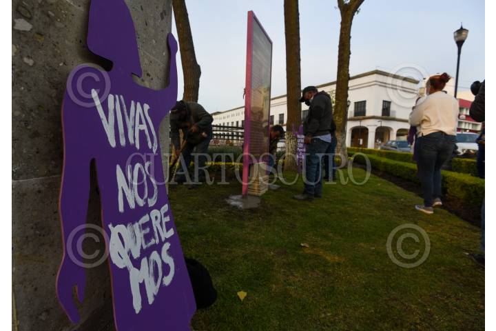 Los memoriales de víctimas de feminicidio de Fátima Quintana y Eugenia Machuca fueron removidos de la Plaza de los Mártires e instalados de manera temporal en la Plaza González Arratia.