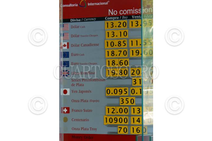 MÉXICO, D.F., 24JULIO2012.- Al mediodía de hoy el tipo de cambio en las sucursales bancarias del centro de la ciudad llegó a 12.80 pesos por dolar a la compra y 13.90 a la venta. FOTO: PEDRO ANZA /CUARTOSCURO.COM