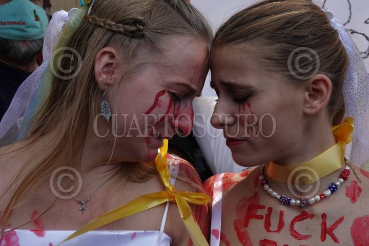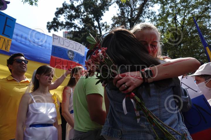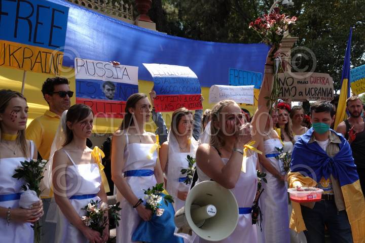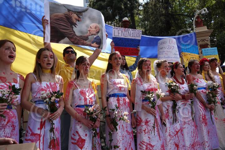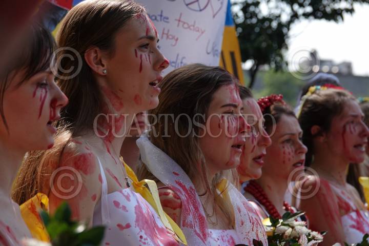Habitantes ucranianos se manifestaron en la embajada rusa para exigir paz y cese a la guerra declarada por Rusia.