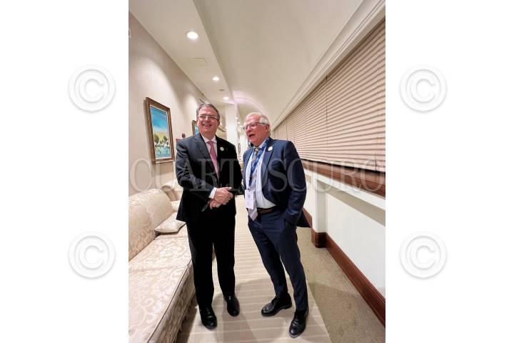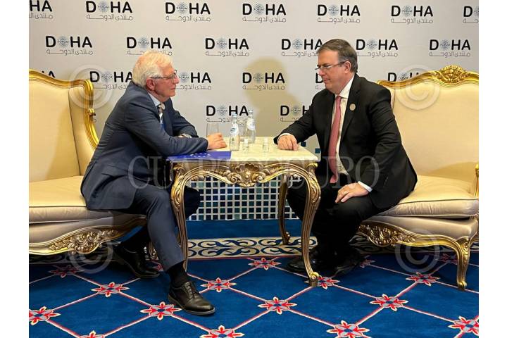 Josep Borell, Alto Representante de Unión Europea para Asuntos Exteriores y Política de Seguridad, y Marcelo Ebrard durante el Doha Forum 2022.