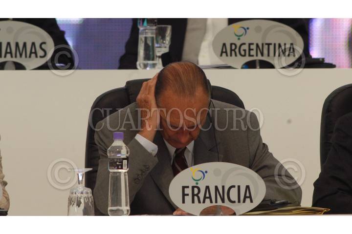 GUADALAJARA, JALISCO 28MAYO2004.- El presidente frances Jacques Chirac, se pega el audifono del traductor la inauguración de la Tercera Cumbre América Latina y el Caribe-Unión Europea. FOTO: Germán Romero/CUARTOSCURO.COM