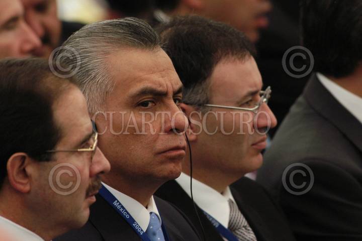 GUADALAJARA, JALISCO 28MAYO2004.- Funcionarios del gobierno federal asistieron ceremonia de inauguración de la Tercera Cumbre América Latina y el Caribe-Unión Europea. Eduardo Romero de la Función Publica, Rafael Macedo de la PGR, Alfonso Durazo secretario del presidente. FOTO: Germán Romero/CUARTOSCURO.COM