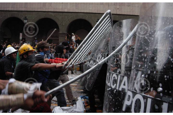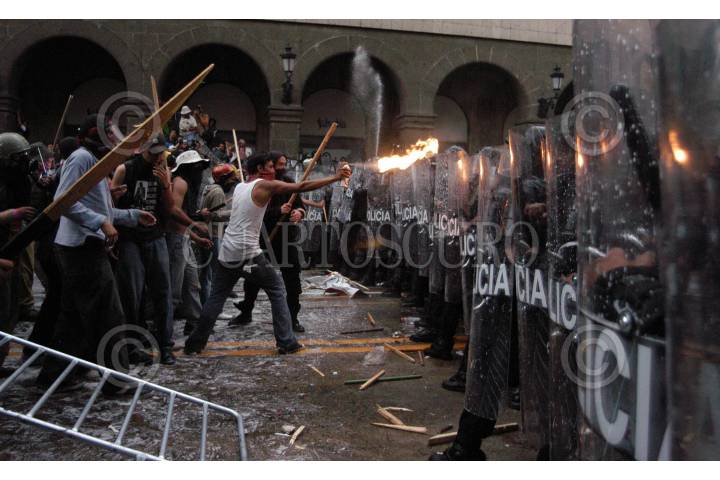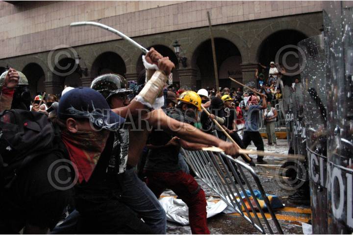 GUADALAJARA, JALISCO 28MAYO2004.- Un grupo de jovenes se enfrentaron a la policia, los aminifestantes rechazan la realización de la Tercera Cumbre América Latinay el Caribe-Unión Europea. FOTO: Germán Romero/CUARTOSCURO.COM