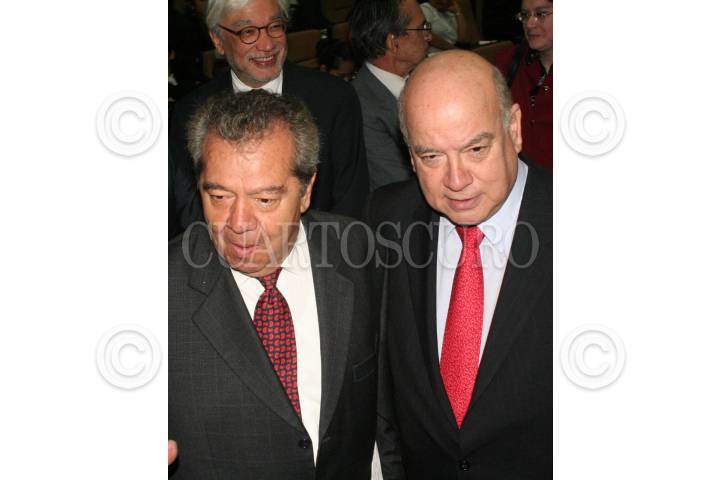 MÈXICO, D.F. 29AGOSTO2006.- Porfirio Muñoz Ledo, quien fuera embajador de Mexico ante la Unión Europea asistió a la apertura de una serie de conferencias donde se analizarà la situaciòn polìtica y social en Latinoamérica. En la imagen con Josè Miguel Insulza, secretario general de la OEA. FOTO: Paola Hidalgo/CUARTOSCURO.COM