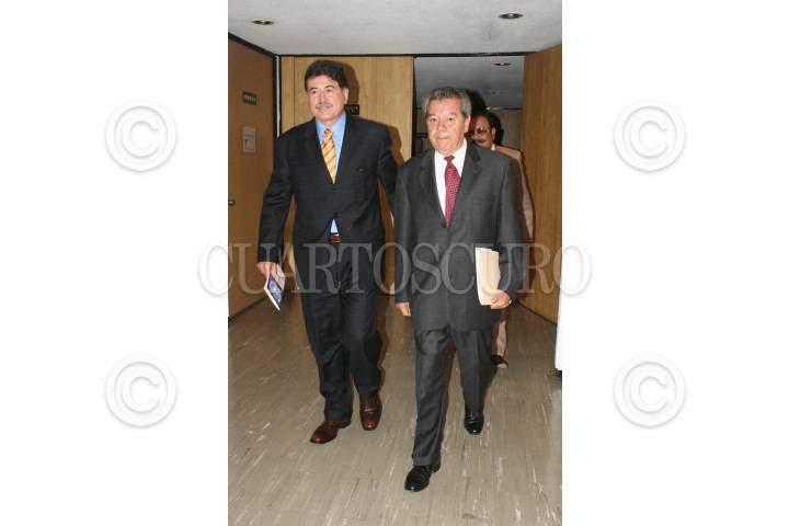 MÈXICO, D.F. 29AGOSTO2006.- Porfirio Muñoz Ledo, quien fuera embajador de Mpexico ante la Unión Europea asistió a la apertura de una serie de conferencias donde se analizarà la situaciòn polìtica y social en Latinoamérica. En la imagen con Luis Valdez Ugalde, director del CISAN. FOTO: Paola Hidalgo/CUARTOSCURO.COM