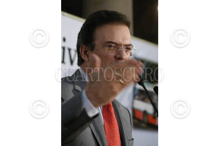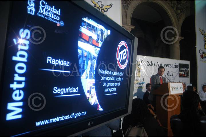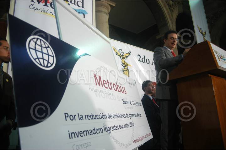 MÉXICO D.F. 22JUNIO2007.-El jefe de gobierno capitalino Marcelo Ebrad Casaubón durante la celebración del 2o. Aniversario del Metrobús el cual recibio un pago de más 120 mil euros, como un primer pago por la reducción de emisiones contaminantes durante 2006 que le otorgo el Banco Mundial. FOTO: GUILLERMO PEREA/CUARTOSCURO.COM