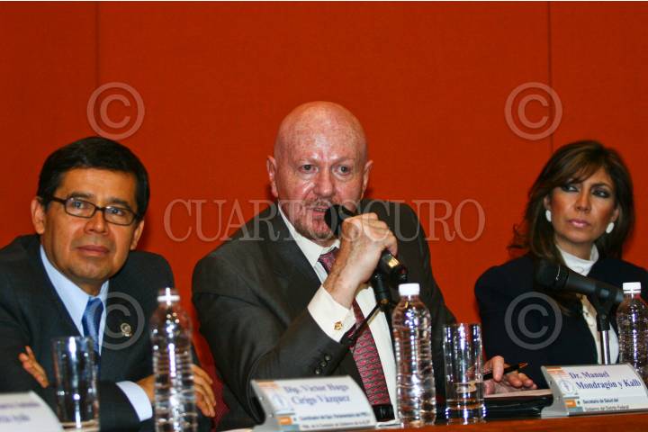 MÉXICO, D.F., 14MAYO2008.- El secretario de Salud local, Manuel Mondragón, y los asambleístas Víctor Hugo Círigo y Rebeca Parada, participaron en el foro Marco Legislativo de la Voluntad Anticipada, realizado en el Instituto Nacional de Cancerología. FOTO: ISAAC ESQUIVEL/CUARTOSCURO.COM